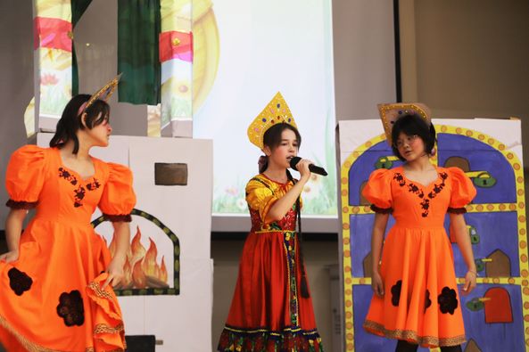 Бағдарлама қонағы түркістандық зияткерлермен сұхбат қана жүргізіп қоймай, мектептегі «Театр үйірмесінің» алғашқы қойылымын тамашалады. Айта кетейік, аталған үйірменің жетекшісі орыс тілі пәнінің мұғалімі Дана Магзимова мектеп оқушыларымен бірге үйірменің премьерасына арнайы кәсіби актерді шақырғанын айтады. «Летучий корабль» атты мектеп оқушылары сахналаған спектакль актер Талғат Карынбаев пен көрермендерді тәнті етті. Өз рөлдерін кәсіби сомдап шыққан үйірме қатысушылары қойылымды тамашалаған әр көрерменге түрлі эмоциялар сыйлады. Сонымен қатар, сахнадағы көркемдік безендірулерде қойылымның шынайы сомдалуына ерекше көрік берді.