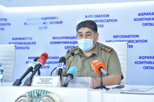 Руководитель департамента Комитета технического регулирования и метрологии Министерства торговли и интеграции РК по городу Шымкент Бастар Ескараев на брифинге... Read more »