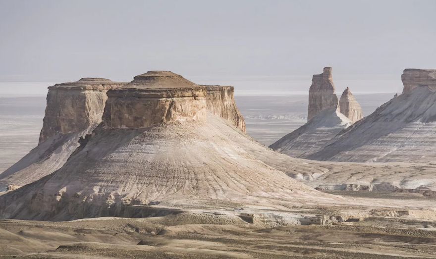 То, что находится на дне океанов, во многом остаётся загадкой. Но, глядя на гигантские обрывы, меловые башни и известняковые изгибы урочища Бозжыра на плато Устюрт в Казахстане, можно получить об этом наглядное представление. Это фотогеничное и почти нетронутое место на побережье Каспийского моря доступно только после тряской поездки на внедорожнике 4×4 из нефтяной столицы региона — города Актау.
